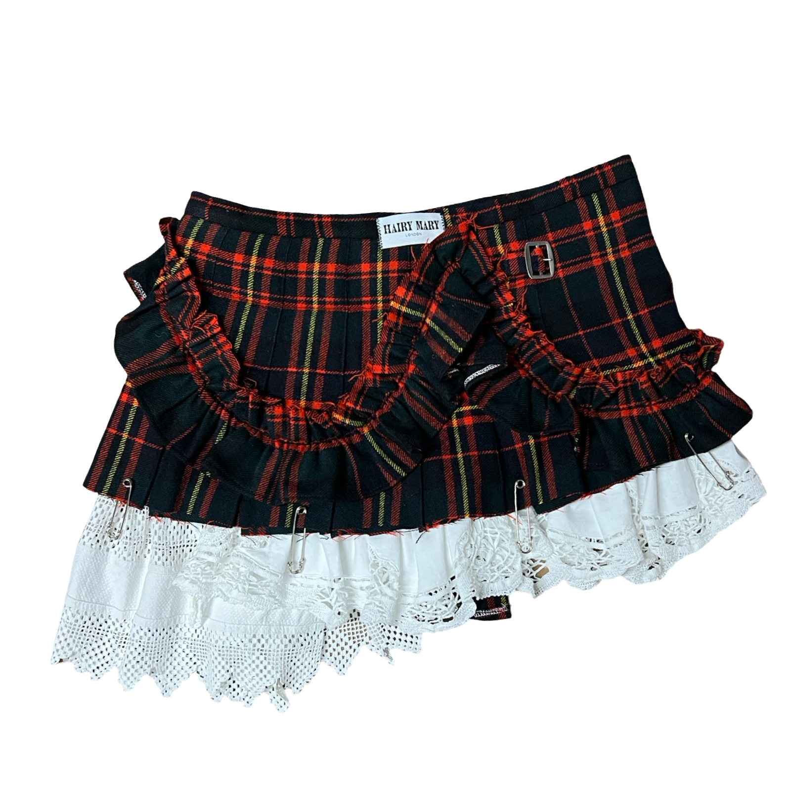 Because of the wooly-ness of the tartan and the leathery leather buckles and the heavy metal, I’d recommend a hand wash / dry clean only please. Don’t take chances with tarts.